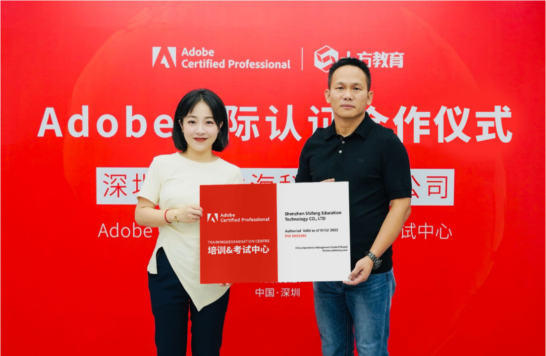 2021年9月27日,Adobe国际认证中国运营管理中心与十方教育科技在深圳举行视频认证专项互联网战略合作仪式,就影视设计认证培训开展深度合作。Adobe国际认证中国运营管理中?将为十方教育学科技学员提供Adobe国际认证服务,助力学员提升专业技能与职场竞争力。