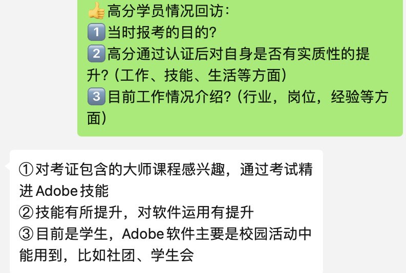 此前,我们回访了一批Adobe Certified Professional产品(Adobe国际认证)高分学员,从校园萌新到职场老将,不同身份的他们,分享了考证路上的技能突破与成长故事。这些真实反馈,或许能解开你对 “认证价值” 的疑虑。