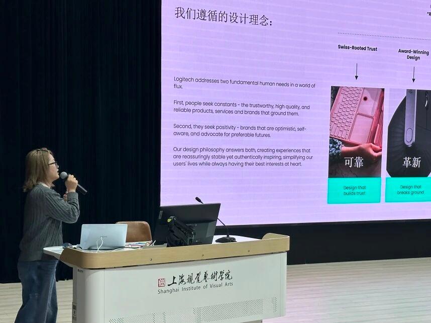 罗技中国产品营销经理江圣妍着重分享了企业对设计作品的评判维度——她提到,企业对设计的要求,是视觉表现力、品牌适配性与市场实用性的结合。罗技始终坚持始终基于以人为本、地球为先、共赢与使命的设计方针,通过引人入胜的品牌叙事,向人们清晰地传递企业使命与价值。因此,理解能力是企业设计师必备的核心素养。就像新产品上市前,设计师必须先吃透产品核心价值,才能输出贴合目标人群的设计物料。