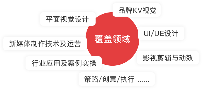 平⾯视觉设计、影视剪辑与动效处理、⽹页设计、UI/UE设计、品牌营销、新媒体制作等。
